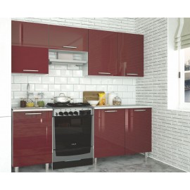 Прямая компактная кухня «Танго» шириной 1500 мм идеально подходит для небольших по площади помещений, поэтому пользуется большой популярностью в однокомнатных квартирах и квартирах-студиях. Глянцевые фасады, яркое цветовое решение в оттенке «Бордо» и металлические ручки, стилизованные под рейлинги — идеальный вариант гарнитура в стиле модерн.Лакони..