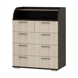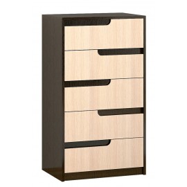 Высокий комод с выдвижными ящиками. Наружная фурнитура отсутствует: ящики открываются за скос. Особенности ЛДСП 16 мм, кромка ПВХ 2 и 0,4 мм шариковые направляющие плавного выдвижения..