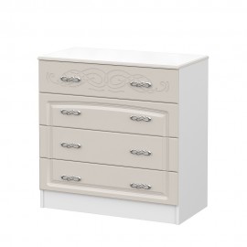Удобный комод в классическом стиле, который будет гармонично вписываться в интерьер гостиной или спальни. Модуль имеет выкатные ящики на роликовых направляющих. Уточненные ручки выглядят дорого и украшают фрезерованные фасады из МДФ. Особенности корпус ЛДСП белый фасад МДФ глянец жемчуг роликовые направляющие металлические ручки..