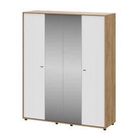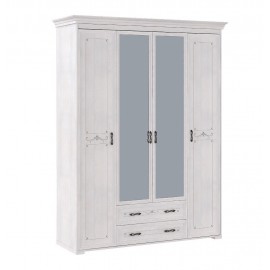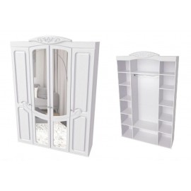 Вместительный 4-х дверный шкаф из коллекции«Афродита»позволит разместить весь гардероб. Благодаря продуманному и функциональному наполнению шкафа Вы сможете грамотно организовать хранение в спальной комнате. Основная секция имеет длинную металлическую штангу для платьев, рубашек и другой одежды на плечиках. Две боковые секции имеют в общей сложност..