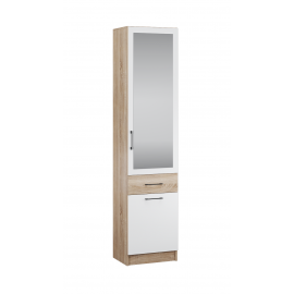 Комбинированный шкаф-пенал Денвер - универсальное решение для организации хранения в малогабаритной прихожей. Имеет набор полок за дверцей с зеркалом, ящик, и закрытую вместительную нишу внизу. Характеристики: Размер, мм: 500х2150х380 Цвет: Дуб сонома/Белый с тиснением древесные опоры Материал: ЛДСП Особенности: современный стиль хорошая вместимост..