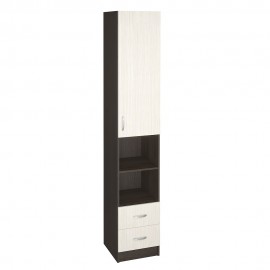 Визуально облегчить мебельный гарнитур в прихожей и добавить ему функциональности поможет пенал из серии Вега. Модель оснащена двумя выдвижными ящиками и комплектом открытых и закрытых полок. Особенности корпус и фасад из ЛДСП в декоре венге/дуб белфорд пластиковые ручки роликовые направляющие на ящике фасад открывается исключительно слева направо..