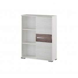 Навесной шкаф Бэль с фасадами из глянцевого ЛДСП в цвете «белый премиум» и корпусом в цвете «дуб крафт золотой» — это стильный и функциональный предмет мебели. Он оснащён открытыми полками, что обеспечивает удобное хранение различных предметов. Ручки шкафа выполнены из ABS-пластика..