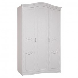 Жемчужный цвет 3-х створчатого шкафа Гертруда удачно подчеркивает плавные линии на фрезерованных фасадах из МДФ. Петли дверей у шкафа имеют доводчики и долговечную кромку на лицевых торцах. Особенности фасады из МДФ с фрезеровкой кромка 2 мм безопасные углы удобные хромированные ручки наполнение – одна штанга и комплект полок..