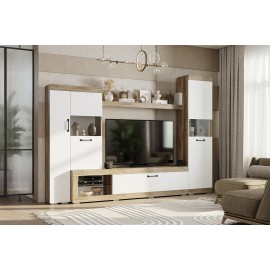 Стенка в гостиную Тесла ГС-01, дуб каньон/белый