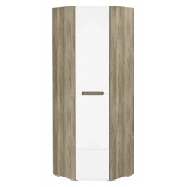 Шкаф угловой Вегас благодаря своей конструкции позволяет организовать грамотное хранение вещей, используя при этом минимум пространства. Шкаф разделен на две секции, одна из которых оснащена полками, а другая - штангой для одежды. Особенности корпус ЛДСП, дуб крафт табачный фасад МДФ, дуб крафт белый петли без доводчика «Boyard» опора подпятник..