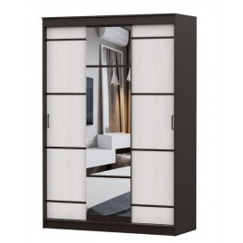 Вместительный, эргономичный, трёхдверный шкаф-купе с одним зеркальным фасадом сохранит Ваш гардероб, занимая минимум площади. Внутри справа - штанга для вешалок и антресольная полка, слева - бельевой отсек с четырьмя полками..