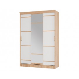 Трехдверный шкаф с комбинированным фасадом, штангой и множеством полок внутри. Характеристики: Размер, мм: 1360х2200х510 Материал: ЛДСП с декором из МДФ Цвет: Ясень белый Особенности: приятный дизайн хорошая вместимость разноплановое наполнение универсальная сборка зеркало на фасаде..