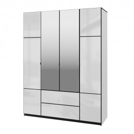 Стильный вместительный шкаф Палермо для одежды и белья с двумя ящиками. Имеет стильное исполнение, ручки отсутствуют. Особенности: современный декор белый гладкий шелк/черный гладкий шелк отсутствие наружной фурнитуры увеличенная вместимость..