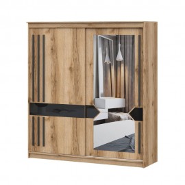Шкаф-купе Блэк отличается оригинальным исполнением и прекрасно вписывается в современную обстановку спальни или входной зоны квартиры. Наличие вместительных полок для хранения белья, штанги для одежды, выдвижных ящиков для аксессуаров - шкаф представляет собой грамотно продуманную систему хранения шириной 2.0 м. Особенности корпус и фасад ЛДСП дуб..