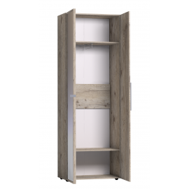Двухдверный распашной шкаф легко открывается за ручку, которая устанавливается на одном зеркальном фасаде, другой - открывается за рамку. Шкаф комплектуется выдвижной штангой и двумя нишами сверху и снизу. Корпус шкафа выполнен в декоре Гаскон пайн. Регулируемые опоры компенсируют неровности пола. Особенности крепится на стену за подвесы зеркало пр..