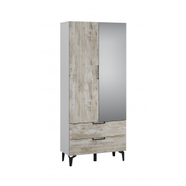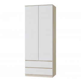 Двухдверный шкаф Лори сочетает в себе лучшие черты корпусной мебели в скандинавском стиле и продуманное наполнение модулей для организации хранения в спальне. За распашными фасадами скрываются широкая металлическая штанга для одежды на плечиках и полка, на которой удобно расположить коробки с вещами. Два выдвижных ящика пригодятся для белья, аксесс..