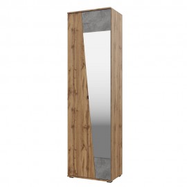 Компактный шкаф с оригинальным фасадом Мари будет актуален в любой комнате, где необходимо хранить одежду на плечиках и коробки с вещами. За декорированной зеркалом дверцей скрывают 2 вместительные полки и евроштанга. Особенности каркас и фасады ЛДСП 16 мм «дуб вотан» и «этерно» петли на фасаде накладные с доводчиком регулируемые опоры..