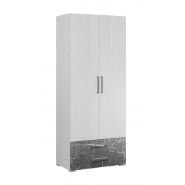Шкаф двухдверныйТеана станет универсальным вариантом для хранения одежды, вещей в сложенном виде и белья в спальной комнате. Имеет продольную штангу для одежды на плечиках, 2 вместительных выдвижных ящика и полку-антресоль. Характеристики: Размер, мм: 900х2200х500 Материал: ЛДСП/МДФ Цвет: Ясень анкор светлый/Мрамор дарк Особенности: трендовый дизай..