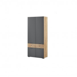 Двухстворчатый шкаф со штангой, 2-мя ящиками и закрытыми нишами. Размеры, мм: 900х2030х466 Материал: ЛДСП Цвет: Гикори рокфорд/Графит серый..