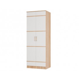 Двухдверный распашной шкаф Сакура - практичное решение в том случае, если Вам необходимо организовать хранение в малогабаритной спальне или прихожей. Корпус выполнен в декоре "дуб сонома", фасады - в белом с геометрическими древесными вставками. Наполнение шкафа представлено комплектом полок и продольной штангой, которые Вы можете установить на удо..