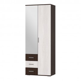 Цвет корпуса: венге.Цвет фасада: дуб атланта. Габариты: (ШхВхГ) Шкаф 2х ств.- 800х2120х470. Шкаф двустворчатый имеет 3 ящика, зеркальную дверь. Шкаф оснащен металлической перекладиной и полками для одежды..