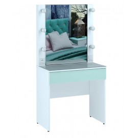 Туалетный столик оснащен подсветкой по периметру, розеткой и выключателем, лампочки не идут в комплекте. Лампочки приобретаются отдельно 6 штук (рекомендуем мощность не более 60 Вт, цоколь Е27): - зеркало толщиной 4 мм с фацетом. - на рабочей поверхности стола - стекло толщиной 4 мм с фацетом, а специальные силиконовые накладки на столешнице препят..