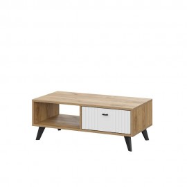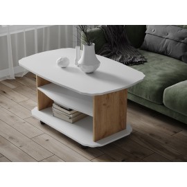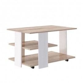 Журнальный столик на колесиках, выполненный в скандинавском стиле. Отличается сочетанием двух оттенков дерева, широкой столешницей и наличием открытой полки. Особенности ЛДСП 16 мм, ПВХ 0,4 мм декор с имитацией натурального дерева надежная роликовая опора..