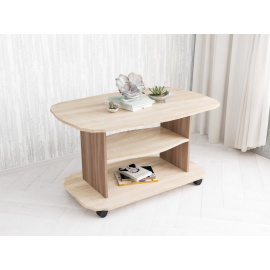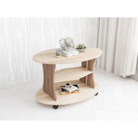 Журнальный стол Консул-1 - практичное решение для гостиной в современном стиле. Модуль имеет колесную опору, благодаря чему Вы можете легко менять его положение в комнате. Выполнен в трендовом декоре с текстурой дерева. Рекомендуем использовать стол строго по назначению: не становиться и не садить на него. Особенности просторная столешница овальной..