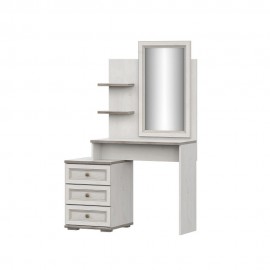 Стильный письменный стол Александрия СТ-103 подойдет для организации дамского уголка в спальне. Наличие зеркала, полок и выдвижных ящиков поможет организовать место хранения для уходовых средств, украшений и аксессуаров. Особенности корпус ЛДСП сосна санторини светлый фасад МДФ сосна санторини фурнитура в комплекте выдвижные ящики на шариковых нап..