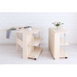 Раскладной стол-книжка для кухни - не прихоть, а скорей необходимость в малогабаритках и квартирах-студиях, где каждый метр важно использовать рационально. Данная модель имеет 2 положения: полностью сложенныйи полностью разложенный. Установлен на пластиковые подпятники, предохраняющие напольные покрытия от повреждения, а значит Вам не стоит бояться..