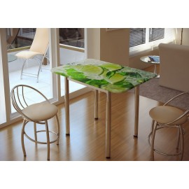 Обеденный стол - незаменимый элемент мебели на любой кухне. И как здорово, когда он не только удобен в ежедневном использовании, но и украшает интерьер. Стол с принтом "лайм" прекрасно впишется в современную обстановкуВашей кухни. Устойчивые хромированные ножки и яркая столешница с изображением сочного лайма понравятся любой хозяйке. Особенности ст..