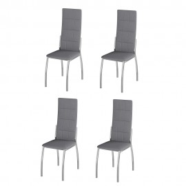 Удобный кухонный стул с высокой спинкой и надежными хромированными опорами. Материал обивки - практичная рогожка серого цвета. В комплекте 4 шт..