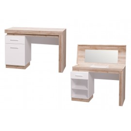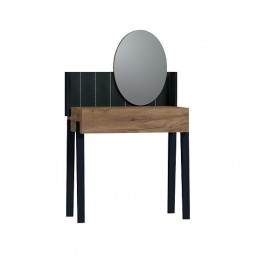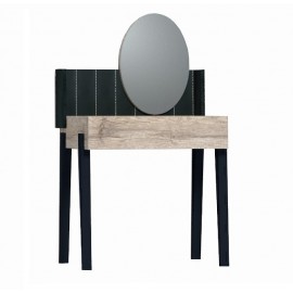 Туалетный стол с широким ящиком и двумя закрытыми нишами. Благодаря универсальной конструкции может использоваться не только в процессе нанесения макияжа, но и для работы или учебы, как письменный стол. Характеристики: Размер, мм: 1002х790х460 Материал: ЛДСП/МДФ Цвет: Дуб каньон/Графит нубук Особенности: трендовый дизайн матовый фасад цвета графит ..