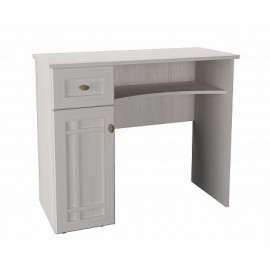Туалетный столик Гертруда гармонично впишется в интерьер классической спальни и позволит Вам разместить аксессуары и косметические принадлежности в одном месте. Модуль оснащен выдвижным ящиком, тумбой с закрытой полкой, набором открытых полок и зеркалом. Особенности фасады из МДФ с фрезеровкой кромка 2 мм удобные хромированные ручки..