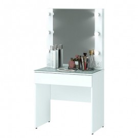 Характеристики: Ширина, мм 800 Высота, мм 1555 Глубина, мм 464 Материал корпуса ЛДСП Материал фасада ЛДСП Лампочки приобретаются отдельно (рекомендуем мощность не более 60 Вт, цоколь Е27): - зеркало толщиной 4 мм с фацетом. - на рабочей поверхности стола - стекло толщиной 4 мм с фацетом, а специальные силиконовые накладки на столешнице препятствуют..