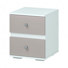 Жемчужный цвет прикроватной тумбы Гертруда удачно подчеркивает плавные линии на фрезерованных фасадах из МДФ. Компактный размер модуля позволит Вам разместить его даже в небольшой по площади спальне. Особенности фасады из МДФ с фрезеровкой кромка 2 мм безопасные углы удобные хромированные ручки наполнение – два ящика..