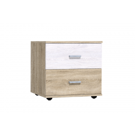 Прикроватная тумба с 2-мя выкатными ящиками - незаменимое дополнение к кроватям из коллекции Наоми. Характеристики: Размер, мм: 402х406х374 Материал: ЛДСП/МДФ Цвет: Дуб каньон/Графит нубук Особенности: трендовый дизайн матовый фасад цвета графит ручки с декором под дубовый спил 2 ящика..