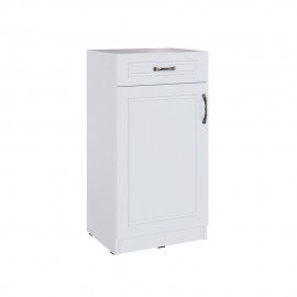 Высокая тумба-обувница в прихожую. Продуманный размер модуля позволит организовать хранение даже в небольшой по площади входной зоне. За глухим фасадом расположена полка. корпус ЛДСП белый с тиснением «древесные опоры» фасад МДФ в пленке ПВХ «белый дуб» классические ручки..