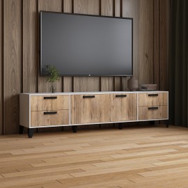 Хотите обустроить гармоничную ТВ-зону в гостиной? Обратите внимание на тумбу из модульной коллекции Тоскана. Ширина в 180 см позволит Вам разместить диагональ от 50", а два выдвижных ящика и две закрытые нишами дверцы - хранить под рукой сопутствующие телевизору аксессуары, книги и журналы. Тумба имеет тонкие черные ручки и высокие устойчивые опоры..