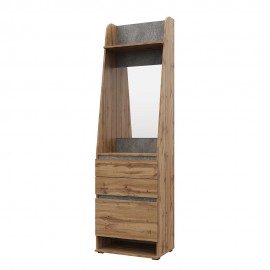 Комбинированный шкаф с зеркалом Мари - незаменимый модуль в любой современной прихожей. Оснащен двумя ящиками на направляющих плавного выдвижения и створкой с откидным механизмом открывания. Особенности каркас и фасады ЛДСП 16 мм «дуб вотан» и «этерно» шариковые направляющие полного, плавного и бесшумного выдвижения на ящиках петли на фасадах накл..