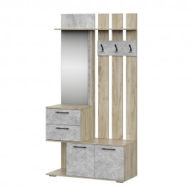 Вешалка Бостон выполнена в стиле лофт и благодаря компактным габаритам поместится в любой по площади входной зоне. Особенности корпус и фасад из ЛДСП в декоре дуб крафт серый/бетонный камень пластиковые ручки нижняя тумба с распашными дверками ящики на шариковых направляющих полного и плавного выдвижения крючки металлические сборка универсальная..