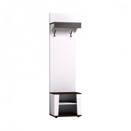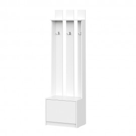 Высокая вешалка Айден шириной 60 см поможет организовать хранение верхней одежды и головных уборов в малогабаритном коридоре. Особенности ЛДСП белого цвета фасад напольной тумбы на газ-лифтах, открывается вниз лицевая фурнитура отсутствует - фасад открывается с помощью системы push-to-open металлические крючки рекомендуется обязательное крепление..